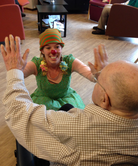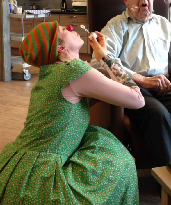 We werken vanuit improvisatie en verbeeldingskracht. Door oprechte aandacht en speelsheid ontstaat er echt contact. Dat kan een glimlach zijn, een klein gebaar of een gedeeld moment van herkenning, altijd met als doel dat iemand zich gezien en gewaardeerd voelt.