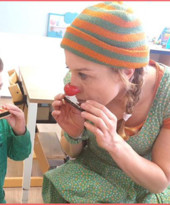 Een contact clown draait niet om optreden, maar om ontmoeten. Het gaat om echte aandacht, kleine momenten van verbinding en het creëren van veiligheid en plezier. Clown Soes en een andere clown stemmen zich af op de persoon tegenover hen en laten vanuit spel en improvisatie spontaan contact ontstaan.